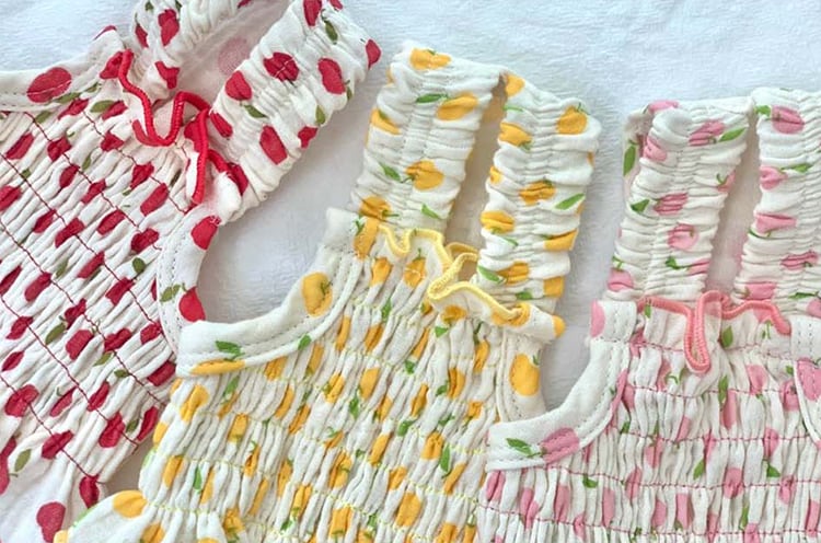 【SALE】 fruit crop onepiece XS ~ XL 3color / 犬服 春夏 新作 お揃い ワンピース ドッグウェア 可愛い 犬の服 ドレス 猫